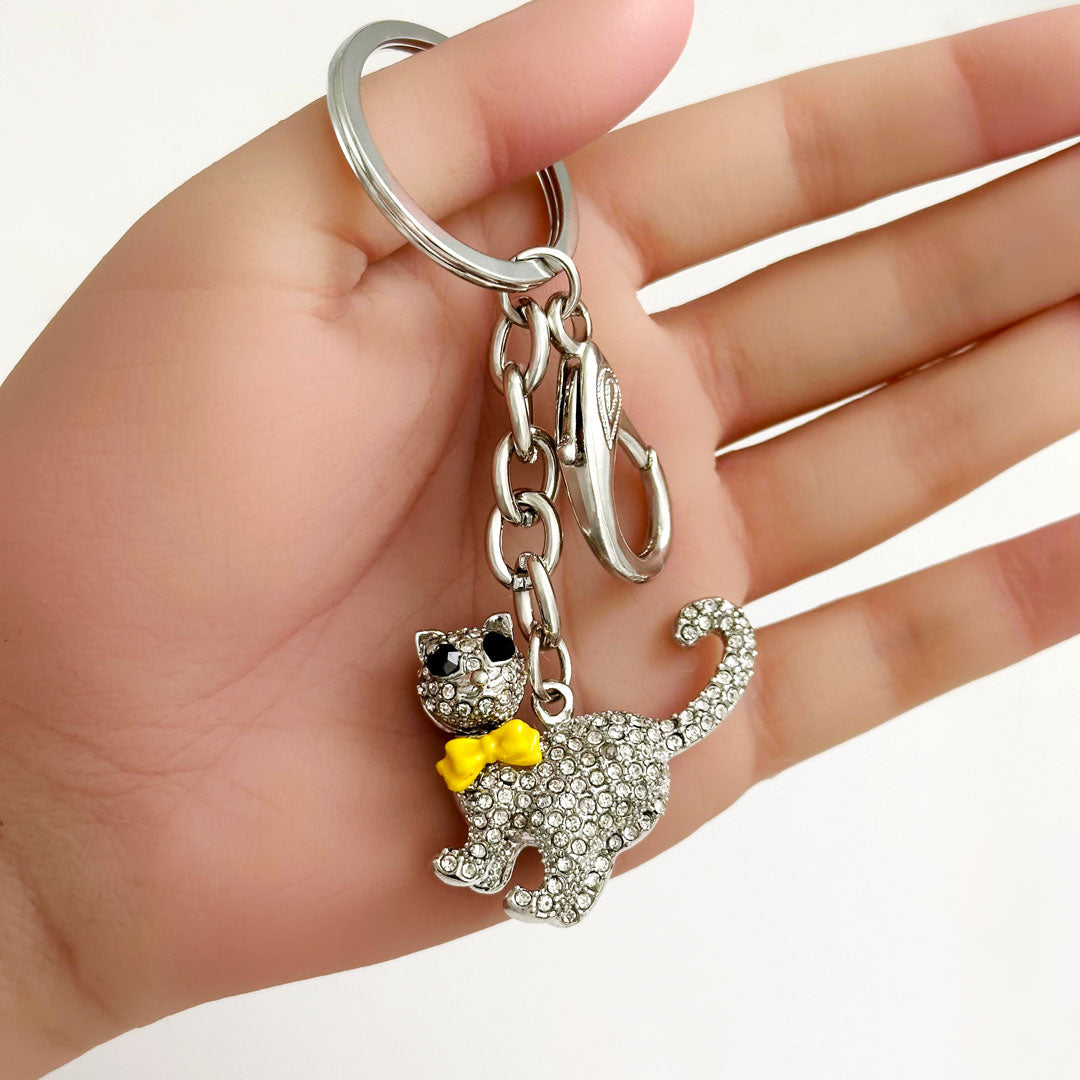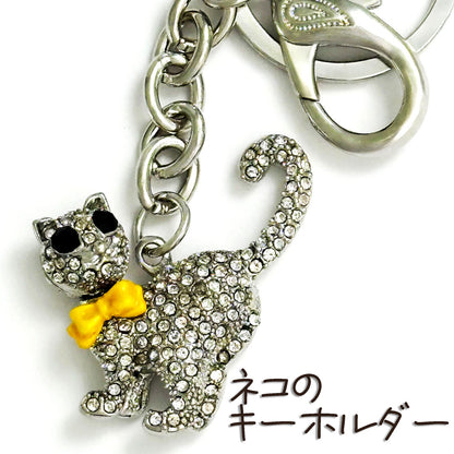 きらきらラインストーン 可愛いにゃんこのキーホルダー キーリング プレゼント ギフト