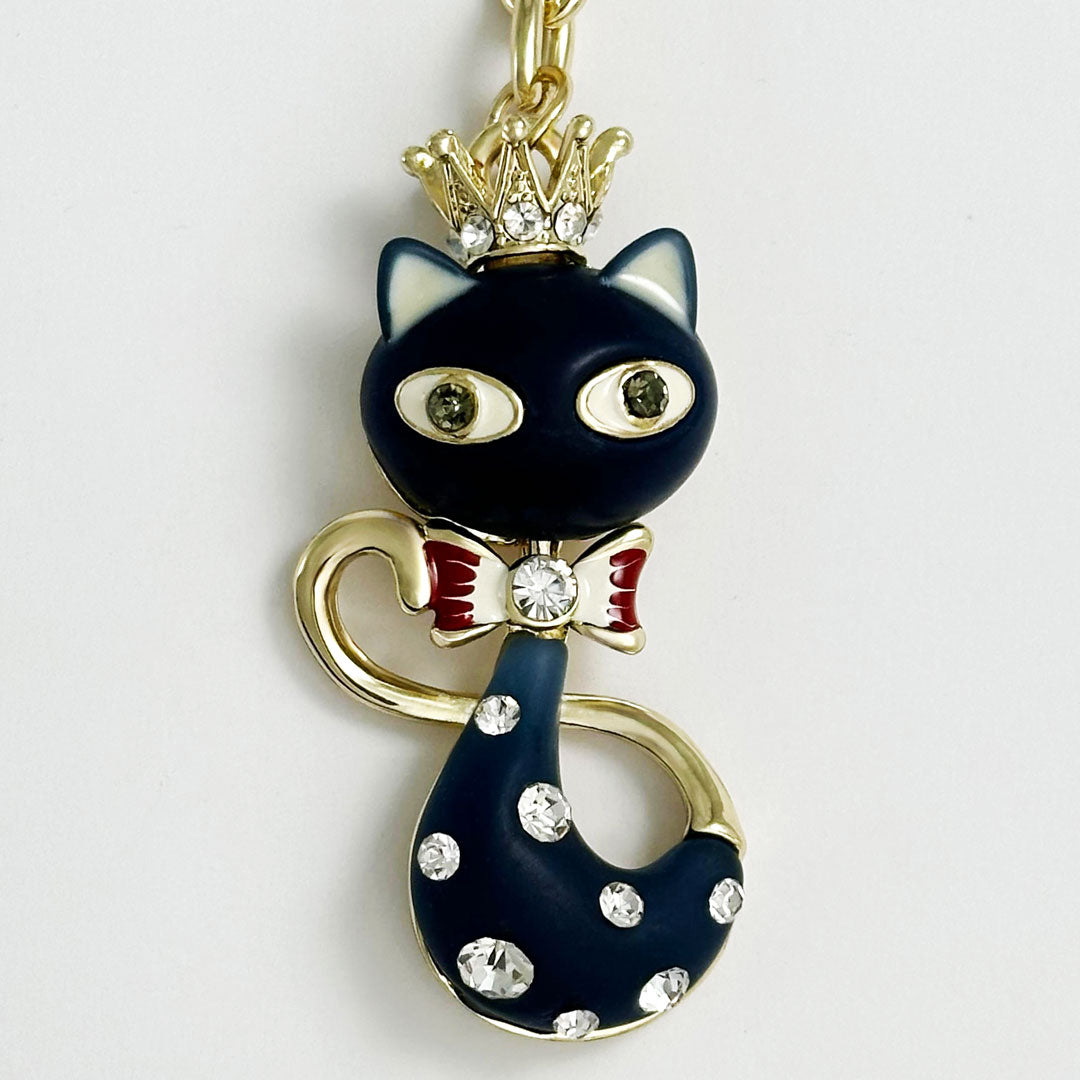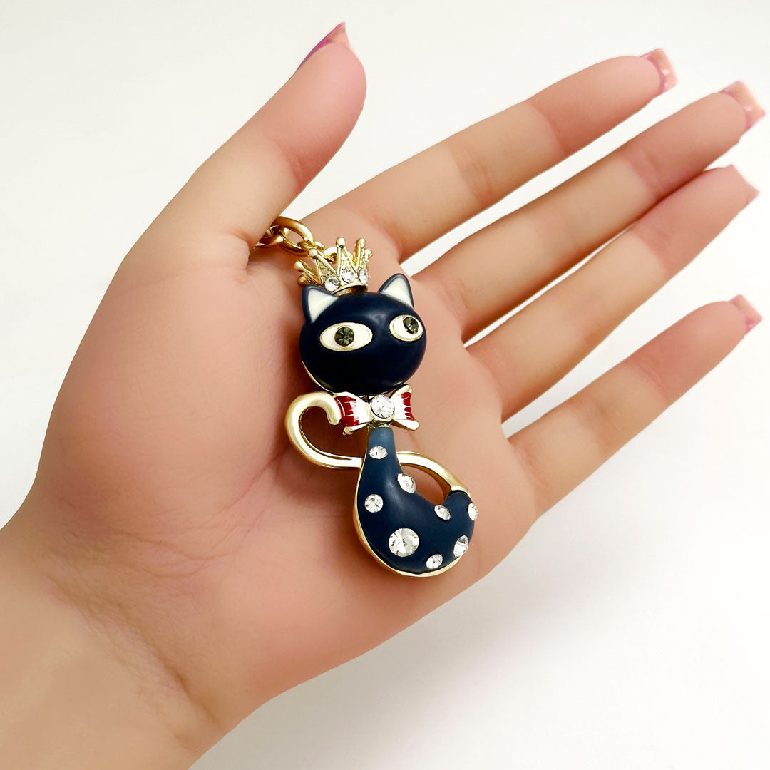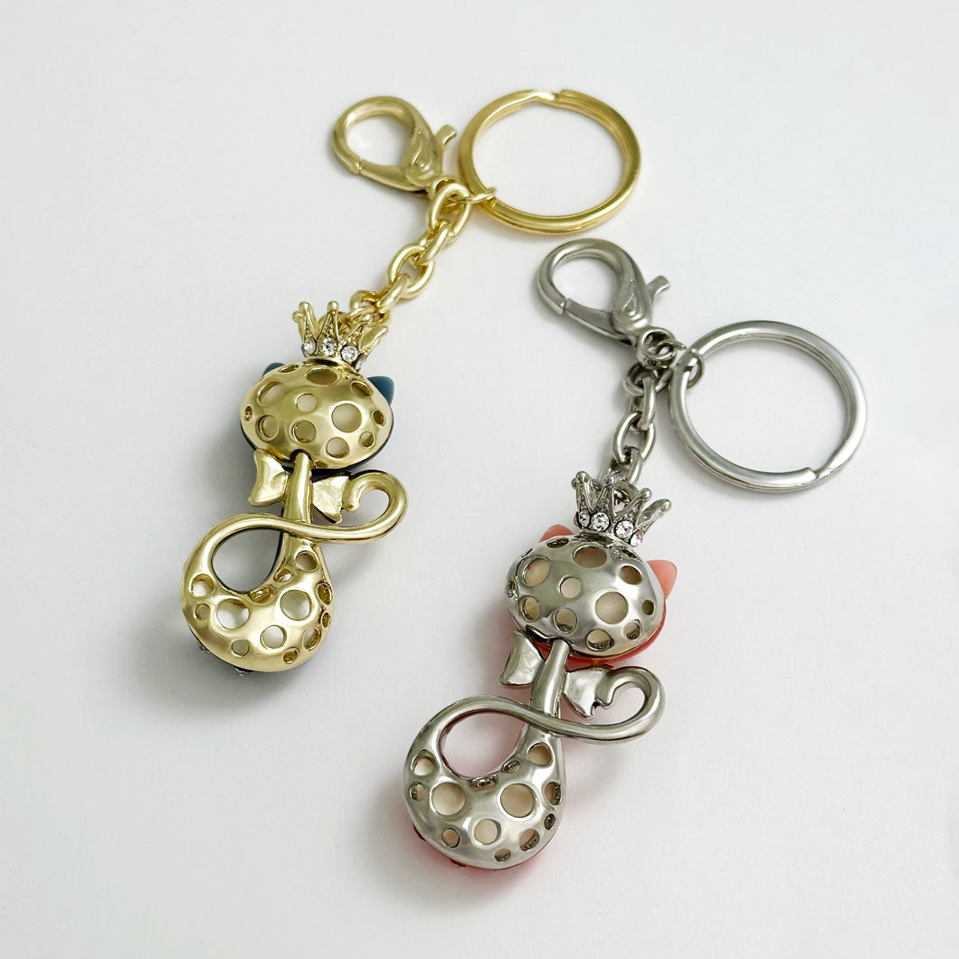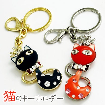 きらきらラインストーン 王冠ネコのキーホルダー キーリング 可愛い ペア お揃い ピンク ブルー プレゼント ギフト