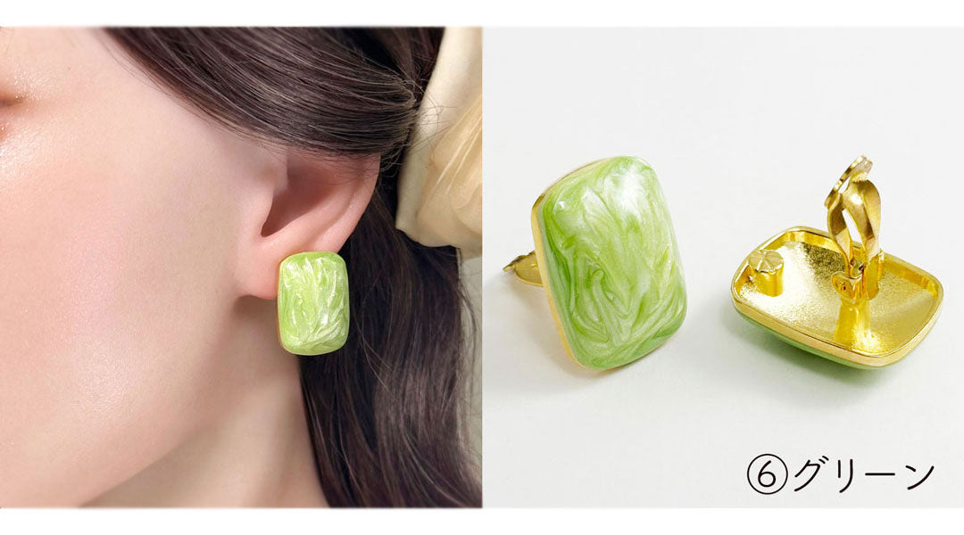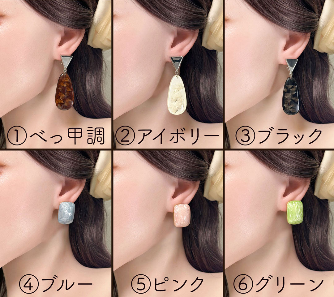 | 特徴 | イヤリング 耳飾り 両耳用 クリップ式 earrings べっ甲調(ブラウン) アイボリー(白) ブラック(黒) ブルー(青) ピンク(桃) グリーン(緑) アメリカ製 |