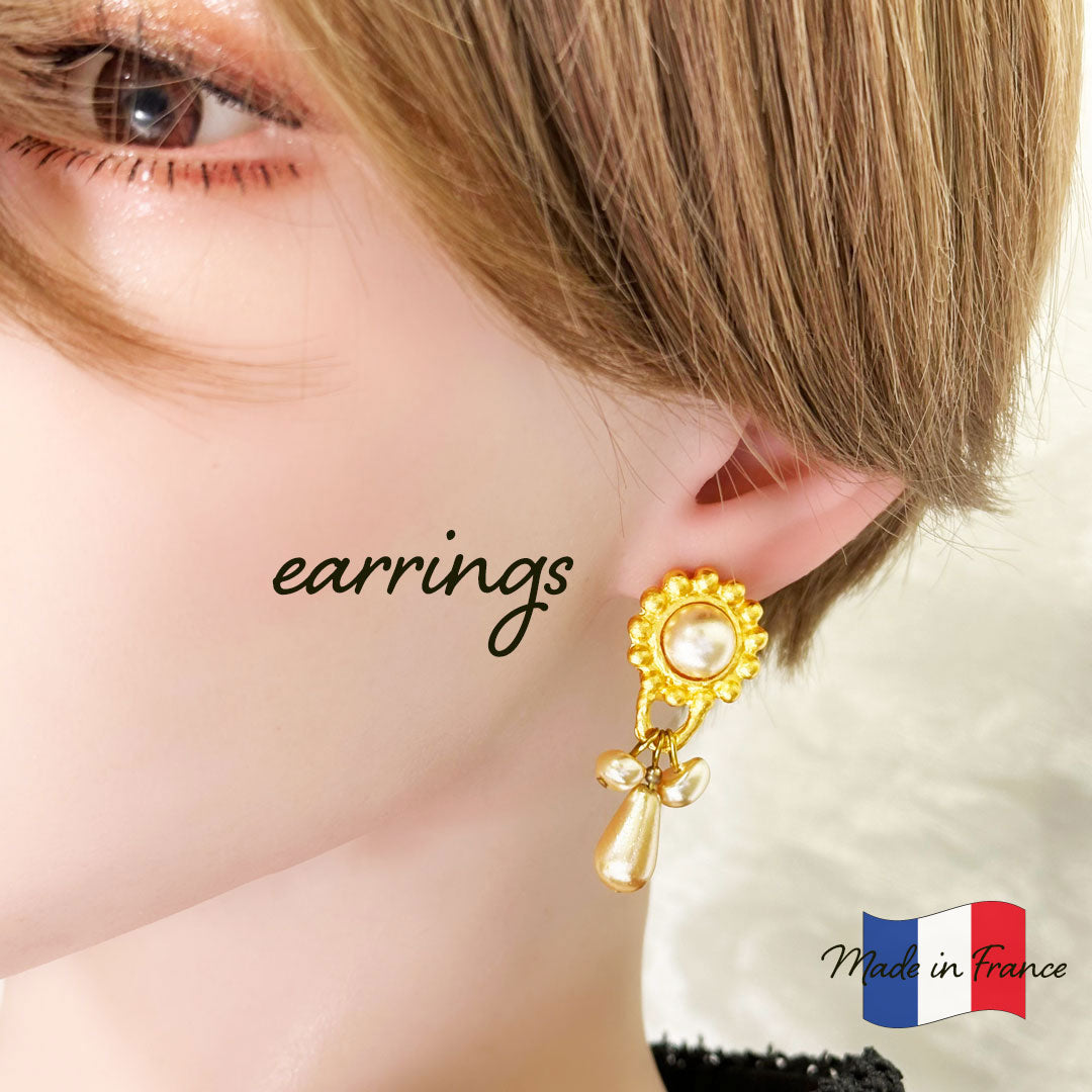 | 特徴 | イヤリング 耳飾り 両耳用 ゴールド(金) アンティーク風 パール 植物 お花 フラワー 揺れる フランス製 |