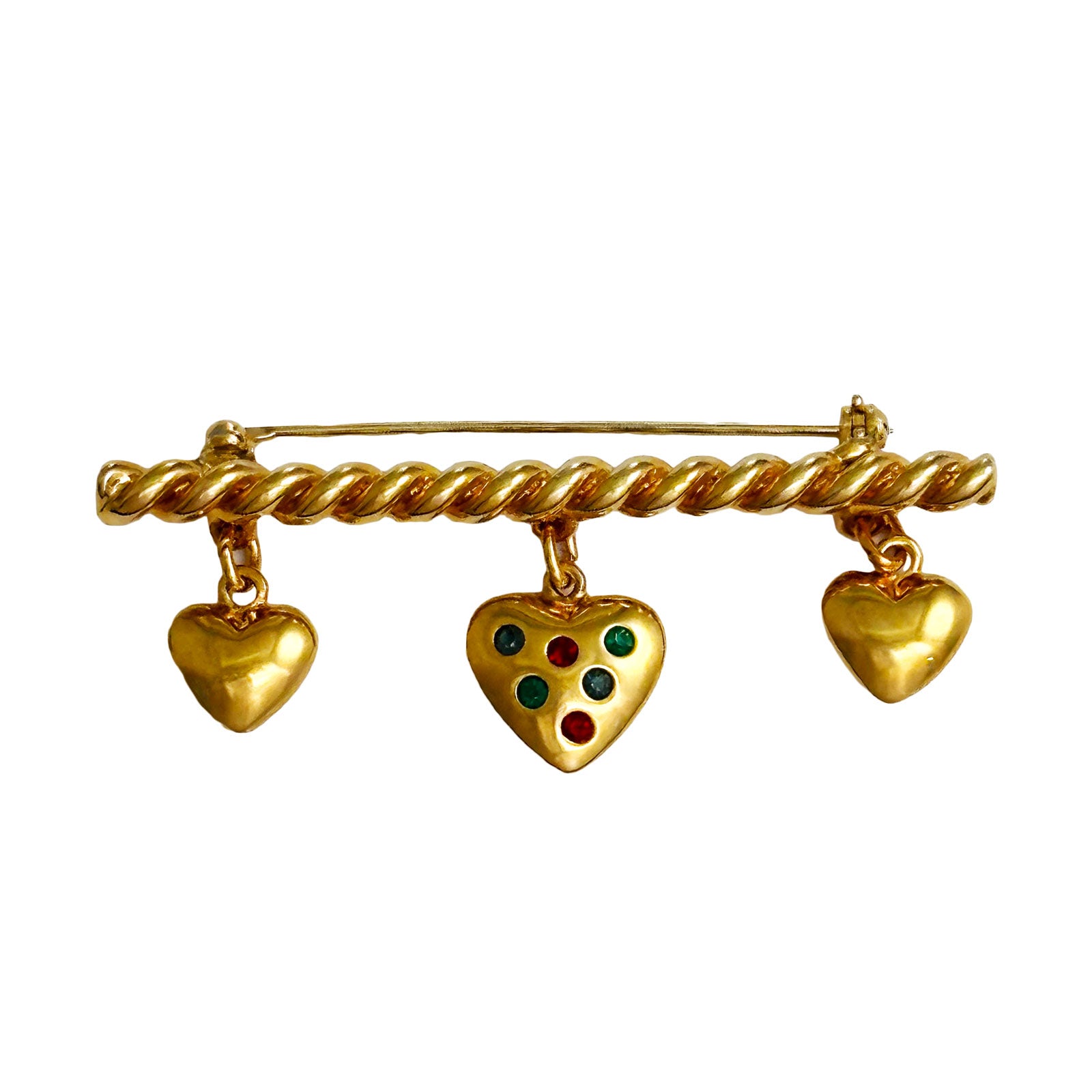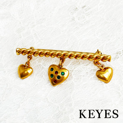 | 特徴 | ブローチ 胸飾り スカーフ留め 揺れる 3連 ハート 金属アレルギー対応(ニッケルフリー) 22KT GOLD PLATED(22金メッキ) |