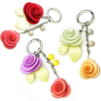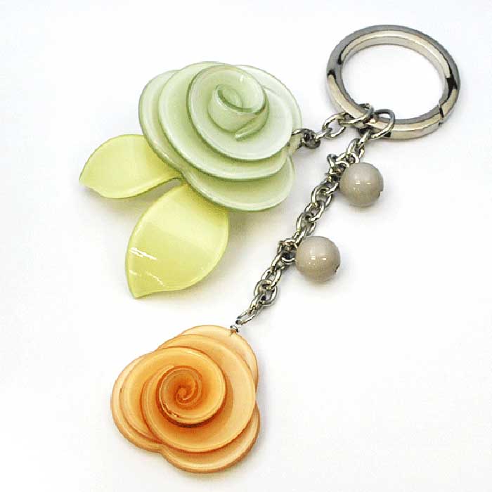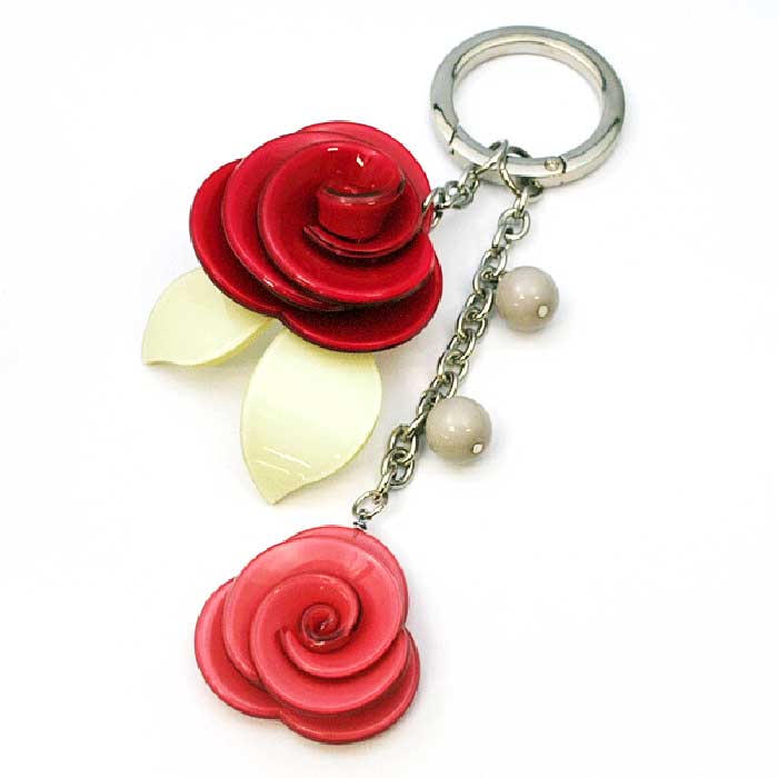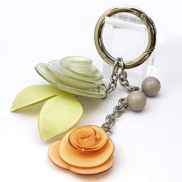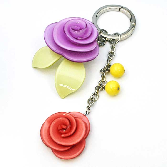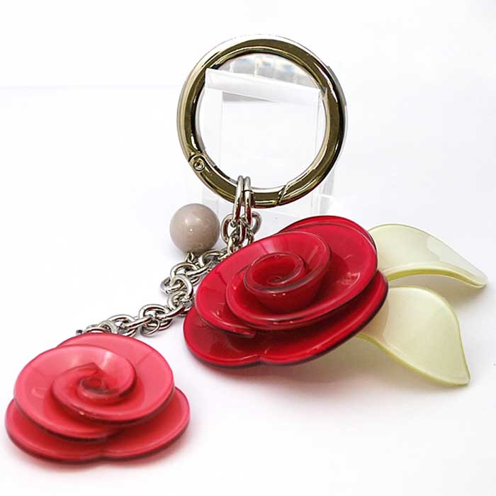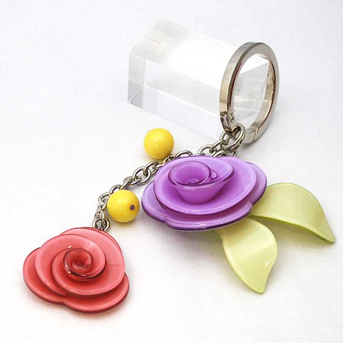 ダブルローズのバッグチャーム アクリル キーホルダー ペア お揃い 薔薇 バラ レッド パープル グリーン プレゼント ギフト