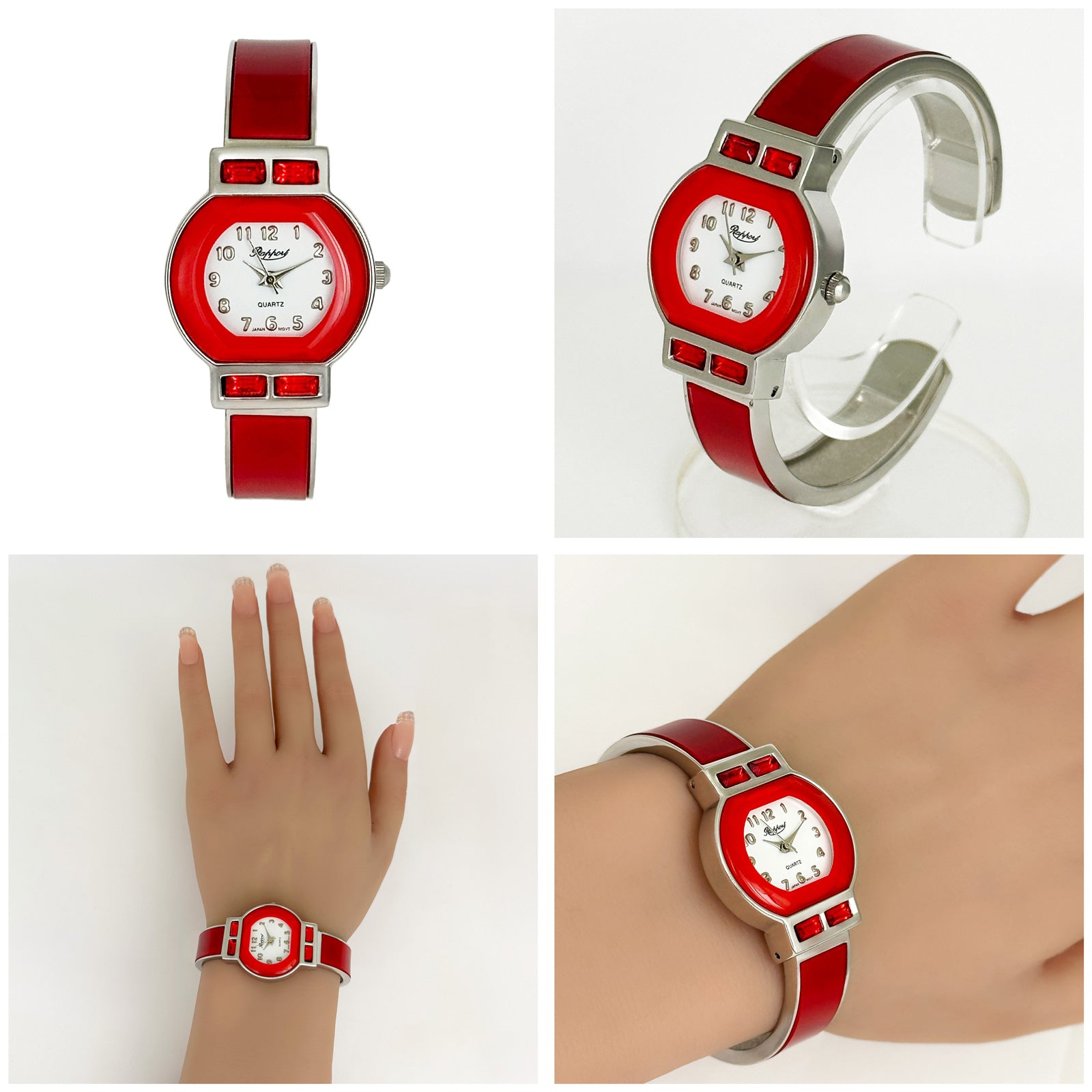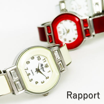 着脱簡単らくらくワンタッチなファッションウォッチ・バングルウォッチはお手軽で可愛いお洒落を楽しめます。 簡単装着できるので、朝学校や会社に行くときの忙しい時間でも腕にはめるだけで手抜きオシャレが完成。ブレスレット感覚のアクセサリーとして街中にお出かけデート、お散歩の普段使いとしても最適なレディースウォッチです。さらに他のアクセサリーとレイヤリングすることでもっとおしゃれになれます。個性的で華やかなデザインが多いのでインスタ映えもばっちりです!ごつめの重量感のあるデザインの物では男性でも楽しめる仕様かと思われます。時計は全て保証書付きでおりますので、初期不良・交換・返品等お気軽にお問い合わせください。ラポールウォッチは安心の日本製ムーブメントで実用的な女性用のかわいいカジュアルウォッチです。