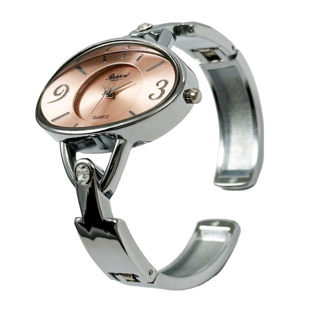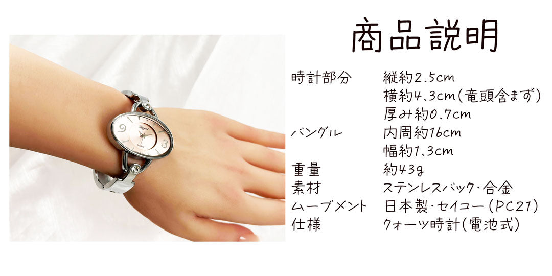 着脱簡単らくらくワンタッチなファッションウォッチ・バングルウォッチはお手軽で可愛いお洒落を楽しめます。 簡単装着できるので、朝学校や会社に行くときの忙しい時間でも腕にはめるだけで手抜きオシャレが完成。ブレスレット感覚のアクセサリーとして街中にお出かけデート、お散歩の普段使いとしても最適なレディースウォッチです。さらに他のアクセサリーとレイヤリングすることでもっとおしゃれになれます。個性的で華やかなデザインが多いのでインスタ映えもばっちりです!ごつめの重量感のあるデザインの物では男性でも楽しめる仕様かと思われます。時計は全て保証書付きでおりますので、初期不良・交換・返品等お気軽にお問い合わせください。ラポールウォッチは安心の日本製ムーブメントで実用的な女性用のかわいいカジュアルウォッチです。