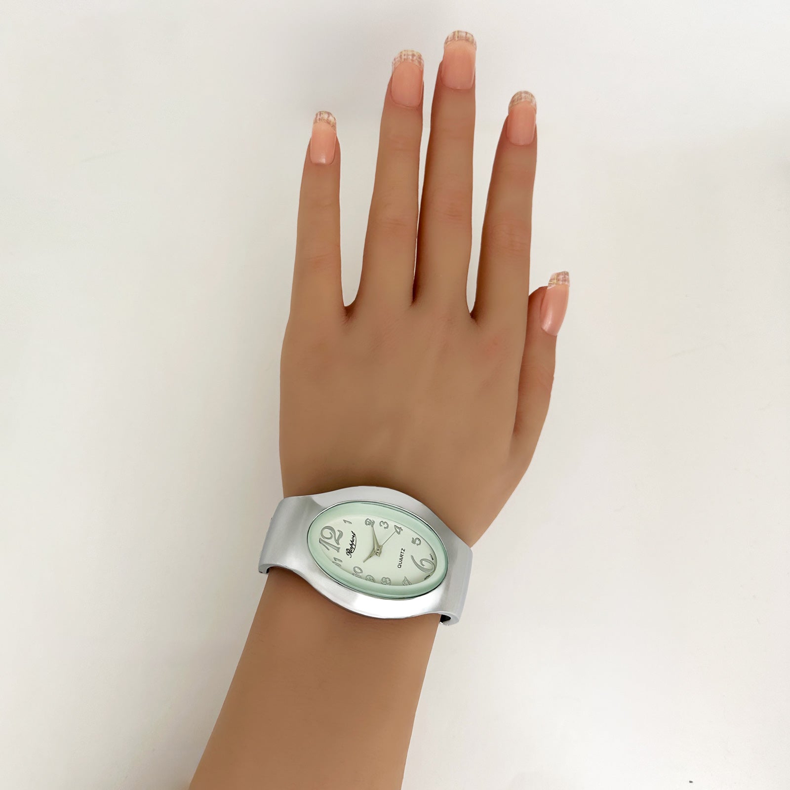 | サイズ | ・サイズ 時計部分 縦約4cm 横約3.5cm(竜頭含まず) バングル内周約16cm 幅約2cm |
