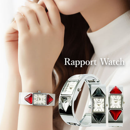 着脱簡単らくらくワンタッチなファッションウォッチ・バングルウォッチはお手軽で可愛いお洒落を楽しめます。 簡単装着できるので、朝学校や会社に行くときの忙しい時間でも腕にはめるだけで手抜きオシャレが完成。ブレスレット感覚のアクセサリーとして街中にお出かけデート、お散歩の普段使いとしても最適なレディースウォッチです。さらに他のアクセサリーとレイヤリングすることでもっとおしゃれになれます。個性的で華やかなデザインが多いのでインスタ映えもばっちりです!ごつめの重量感のあるデザインの物では男性でも楽しめる仕様かと思われます。時計は全て保証書付きでおりますので、初期不良・交換・返品等お気軽にお問い合わせください。ラポールウォッチは安心の日本製ムーブメントで実用的な女性用のかわいいカジュアルウォッチです。