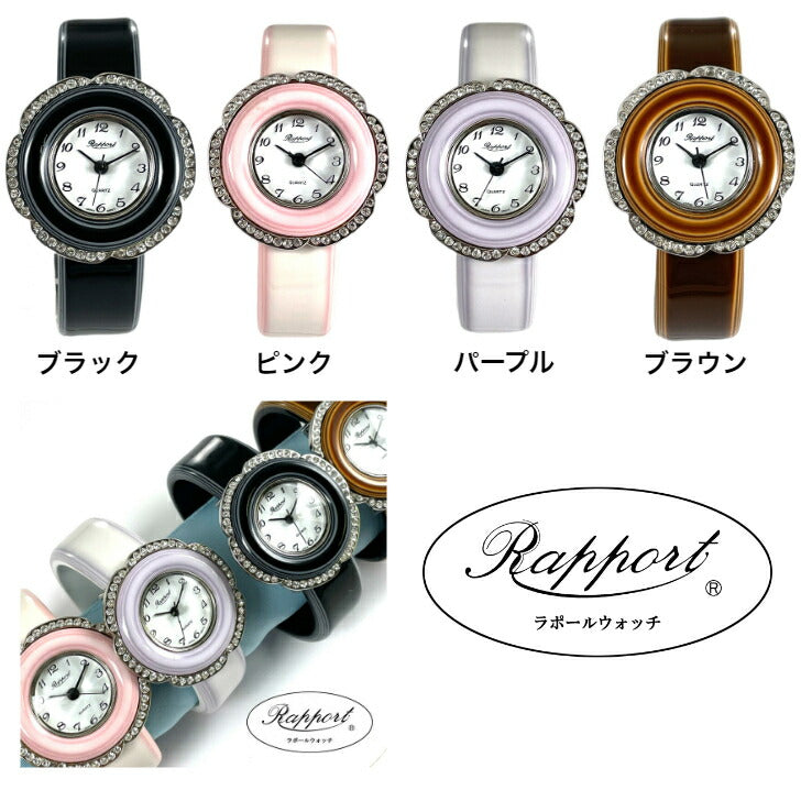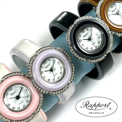 着脱簡単らくらくワンタッチなファッションウォッチ・バングルウォッチはお手軽で可愛いお洒落を楽しめます。 簡単装着できるので、朝学校や会社に行くときの忙しい時間でも腕にはめるだけで手抜きオシャレが完成。ブレスレット感覚のアクセサリーとして街中にお出かけデート、お散歩の普段使いとしても最適なレディースウォッチです。さらに他のアクセサリーとレイヤリングすることでもっとおしゃれになれます。個性的で華やかなデザインが多いのでインスタ映えもばっちりです!ごつめの重量感のあるデザインの物では男性でも楽しめる仕様かと思われます。時計は全て保証書付きでおりますので、初期不良・交換・返品等お気軽にお問い合わせください。ラポールウォッチは安心の日本製ムーブメントで実用的な女性用のかわいいカジュアルウォッチです。