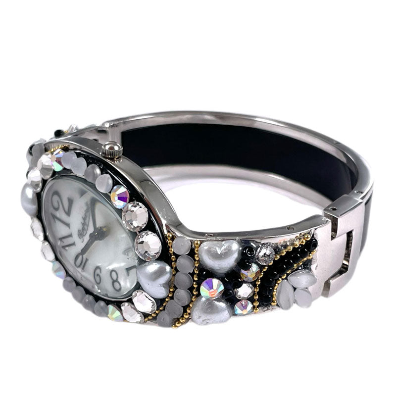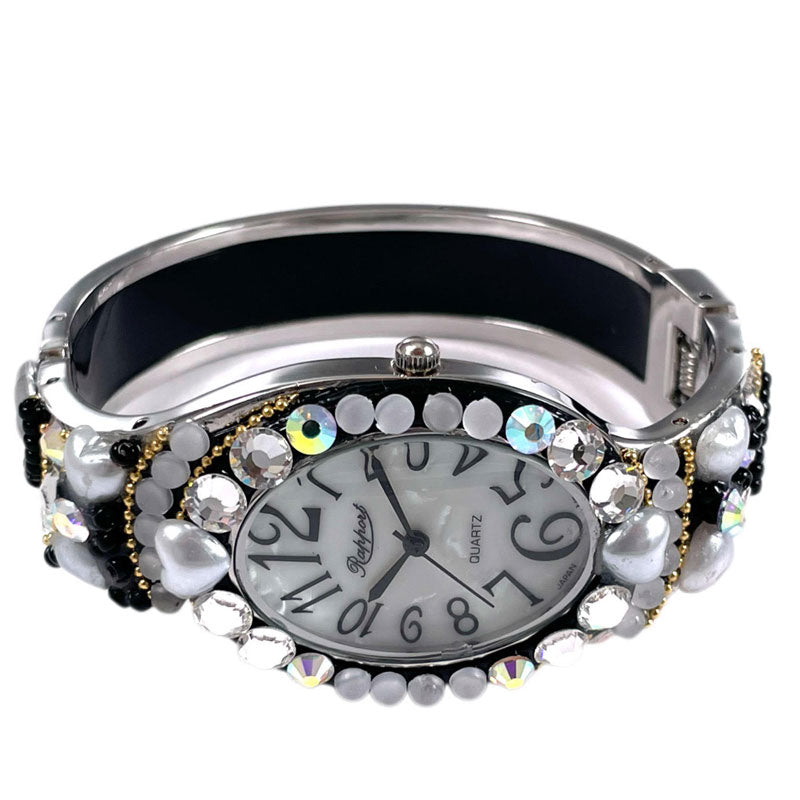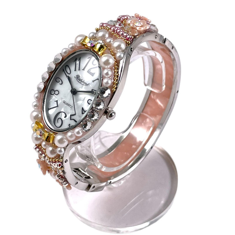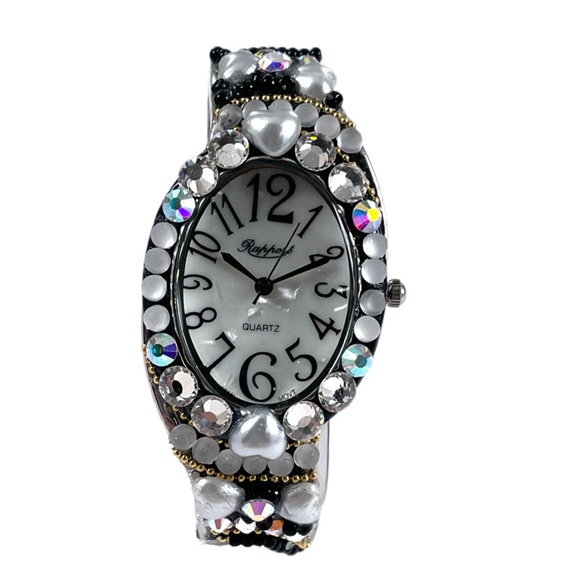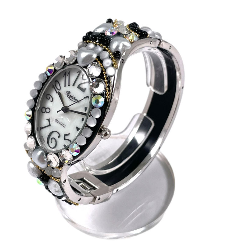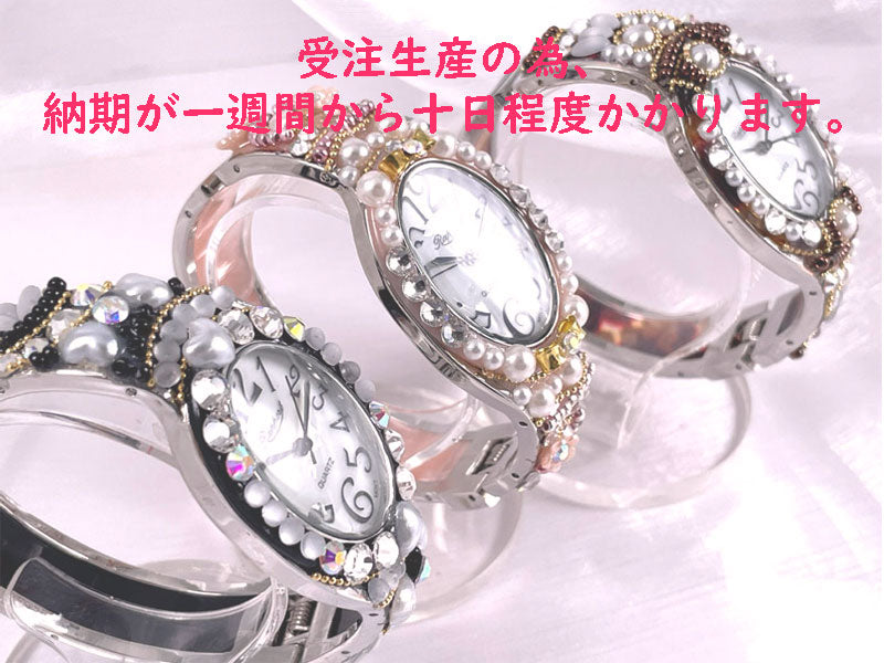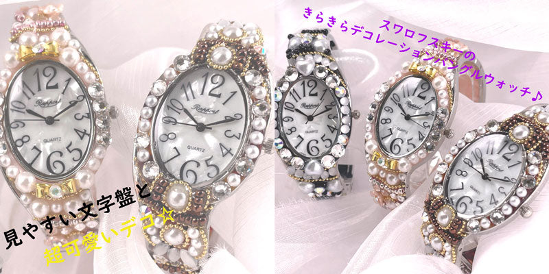 ▼人気のオーバルバングルシリーズの変型タイプをベースにしたデコウォッチ。シルバーフレームです。