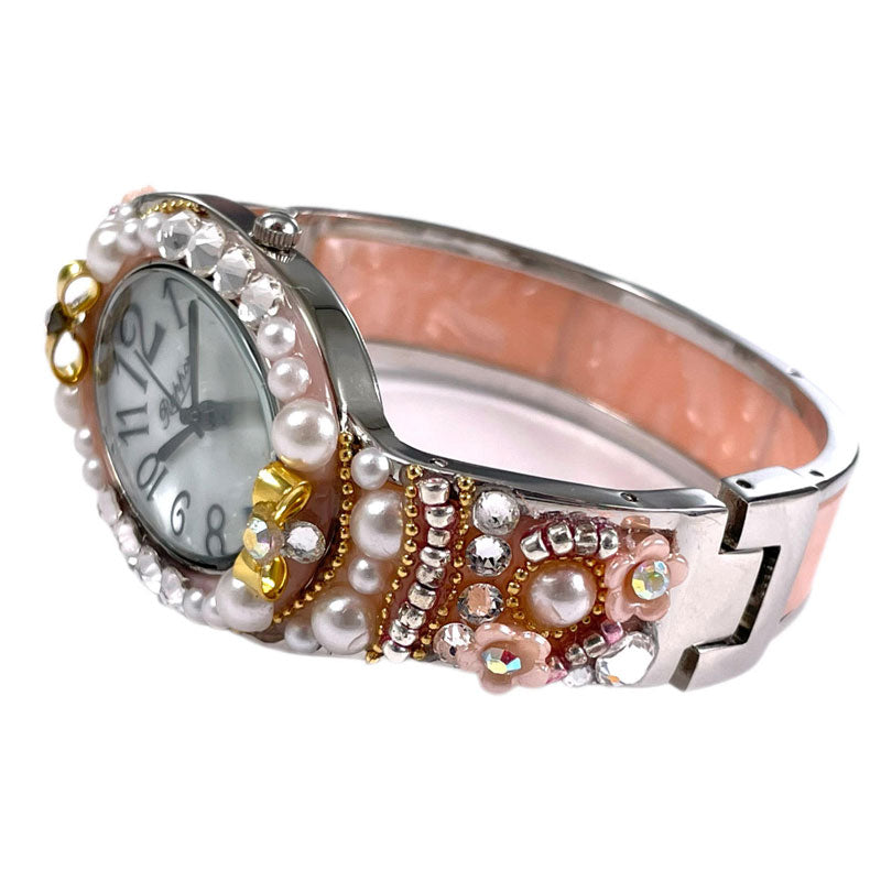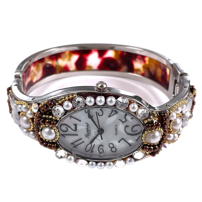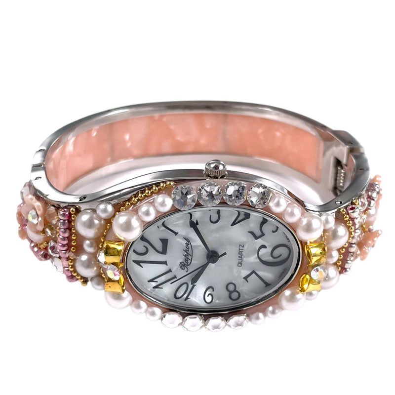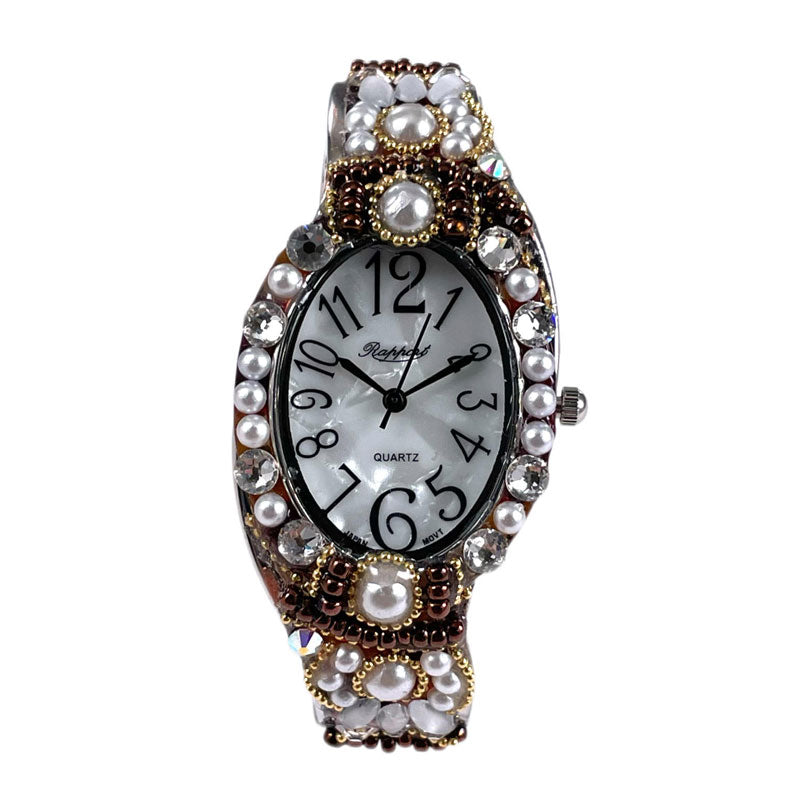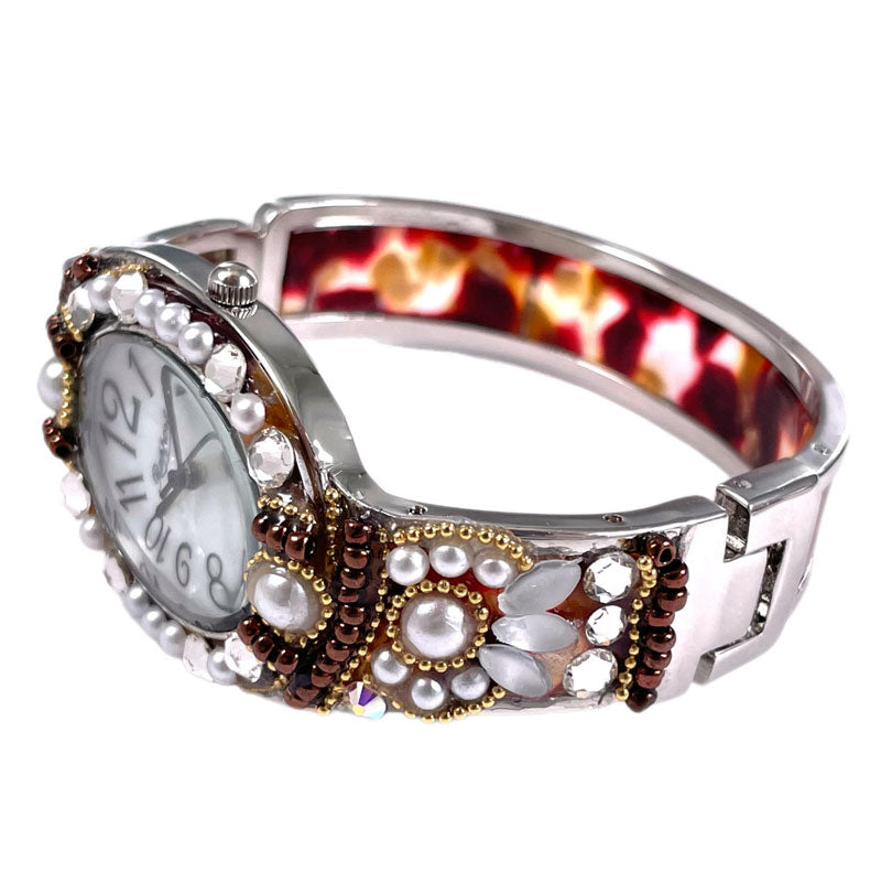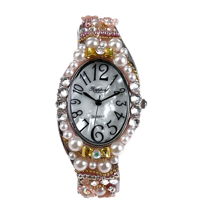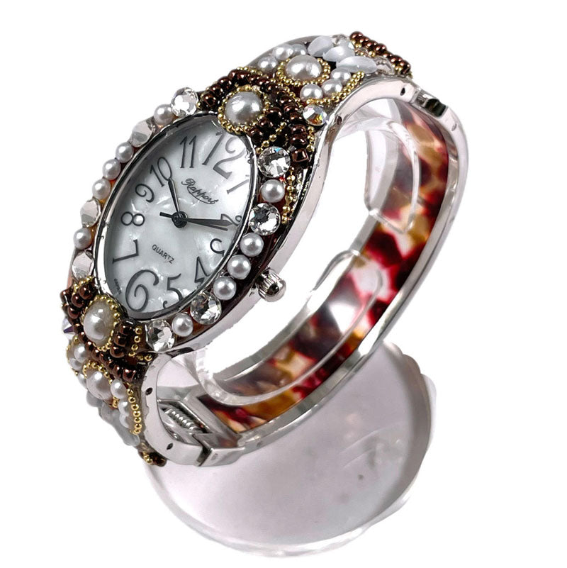 ▼人気のオーバルバングルシリーズの変型タイプをベースにしたデコウォッチ。シルバーフレームです。