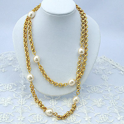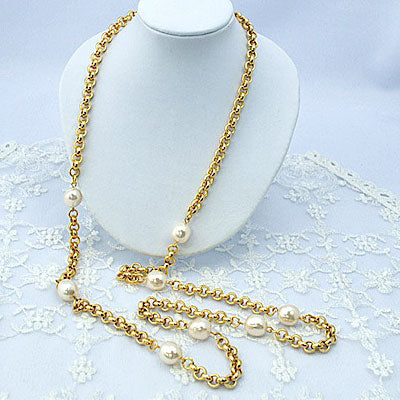 パールのロングネックレス ガラスパール フランス産のインポートアクセ プレゼント ギフト
