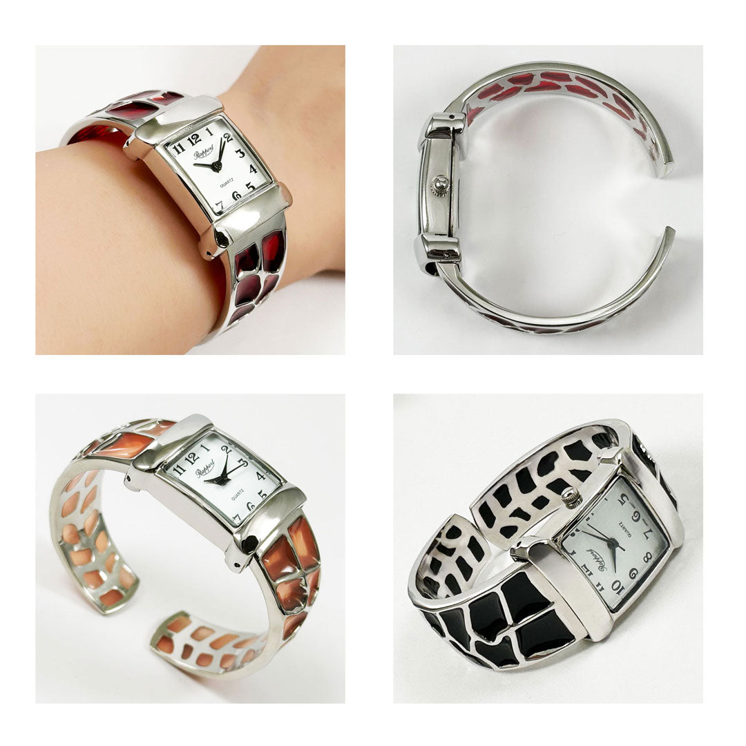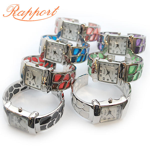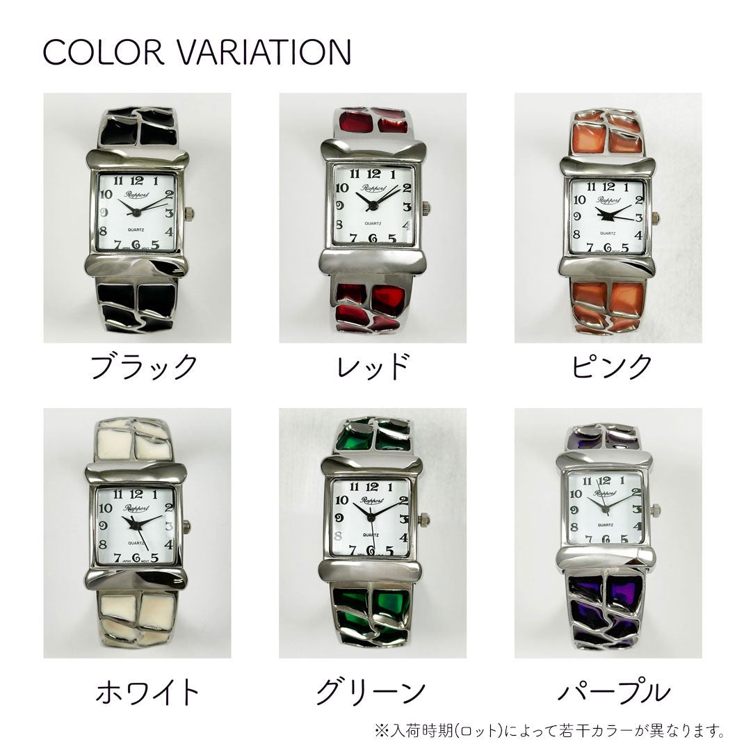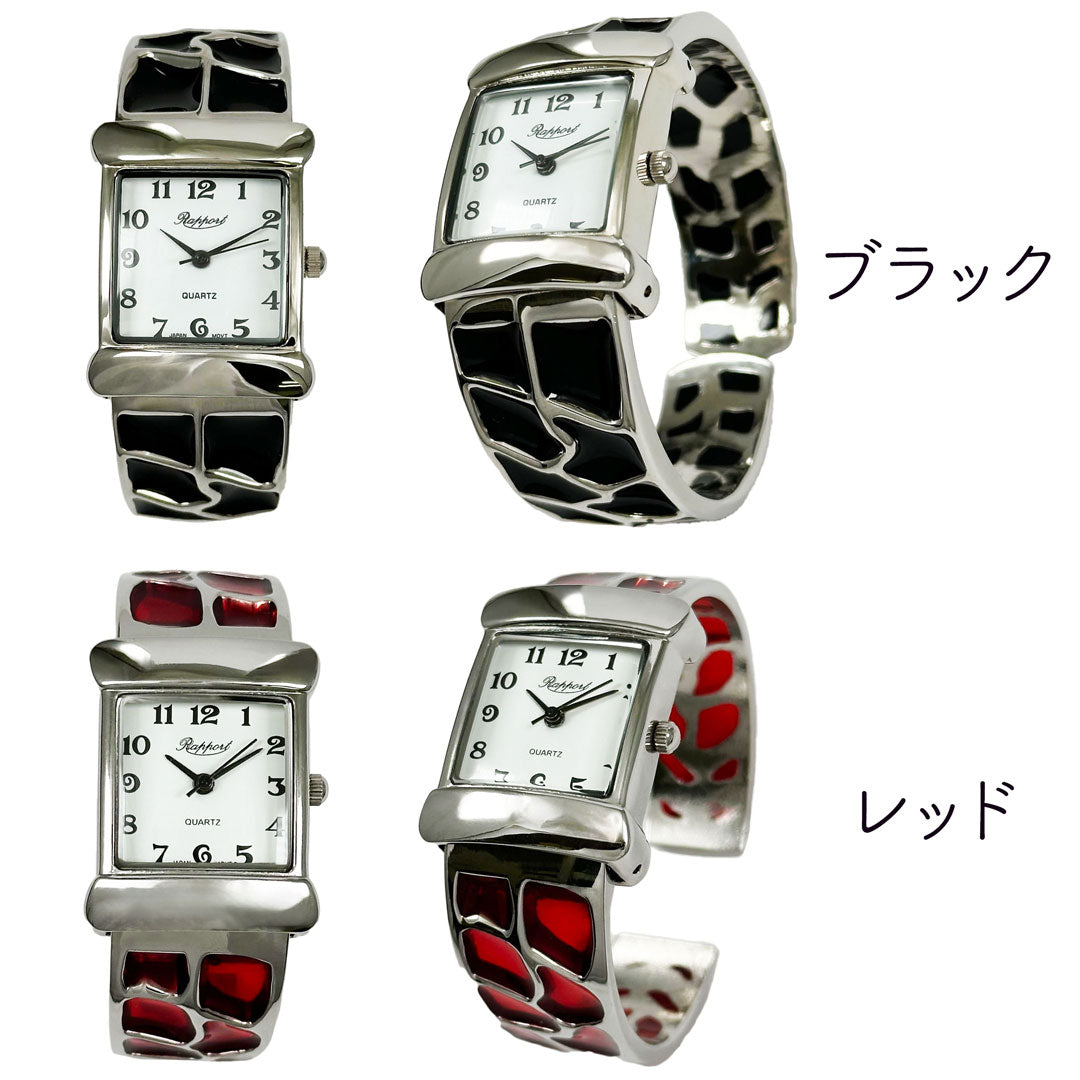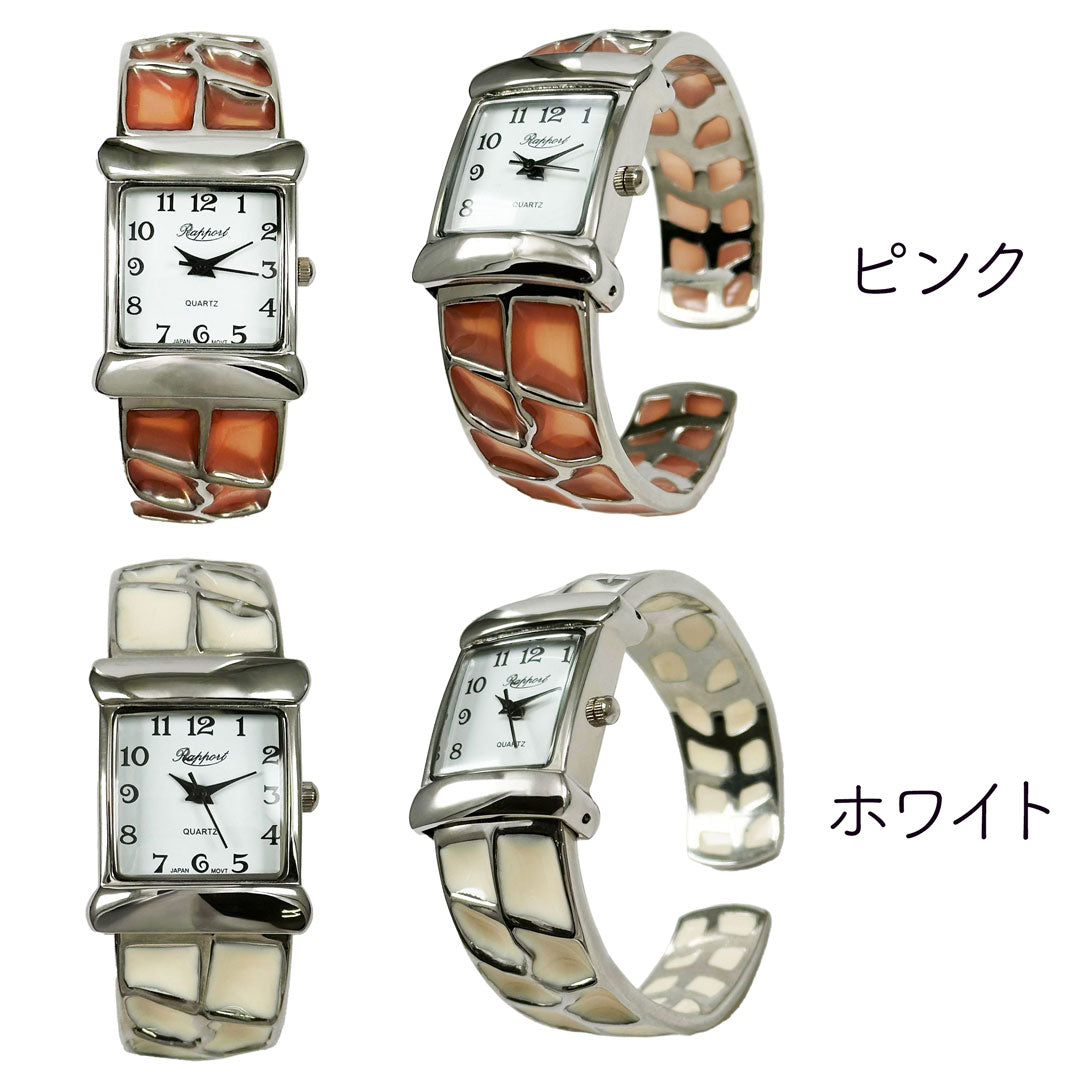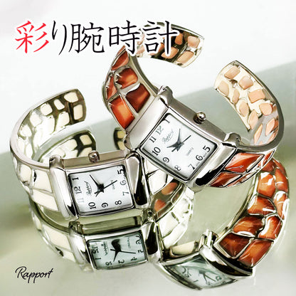 着脱簡単らくらくワンタッチなファッションウォッチ・バングルウォッチはお手軽で可愛いお洒落を楽しめます。 簡単装着できるので、朝学校や会社に行くときの忙しい時間でも腕にはめるだけで手抜きオシャレが完成。ブレスレット感覚のアクセサリーとして街中にお出かけデート、お散歩の普段使いとしても最適なレディースウォッチです。さらに他のアクセサリーとレイヤリングすることでもっとおしゃれになれます。個性的で華やかなデザインが多いのでインスタ映えもばっちりです!ごつめの重量感のあるデザインの物では男性でも楽しめる仕様かと思われます。時計は全て保証書付きでおりますので、初期不良・交換・返品等お気軽にお問い合わせください。ラポールウォッチは安心の日本製ムーブメントで実用的な女性用のかわいいカジュアルウォッチです。