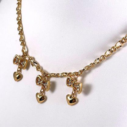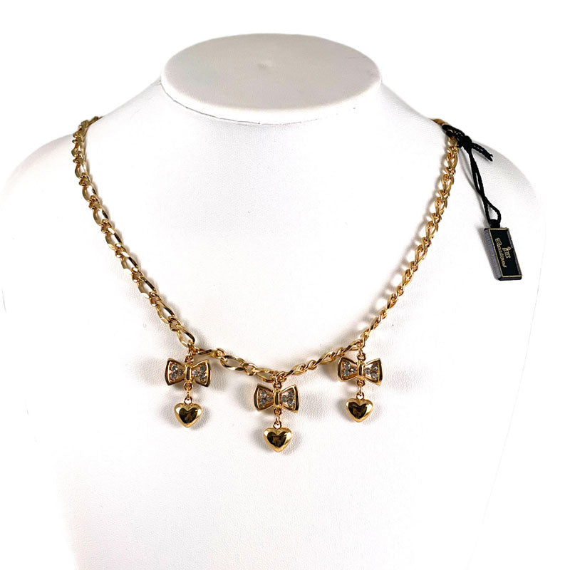 | 特徴 | ネックレス ペンダント 3連 リボン ハート 金属アレルギー対応(ニッケルフリー) 22KT GOLD PLATED(22金メッキ) |