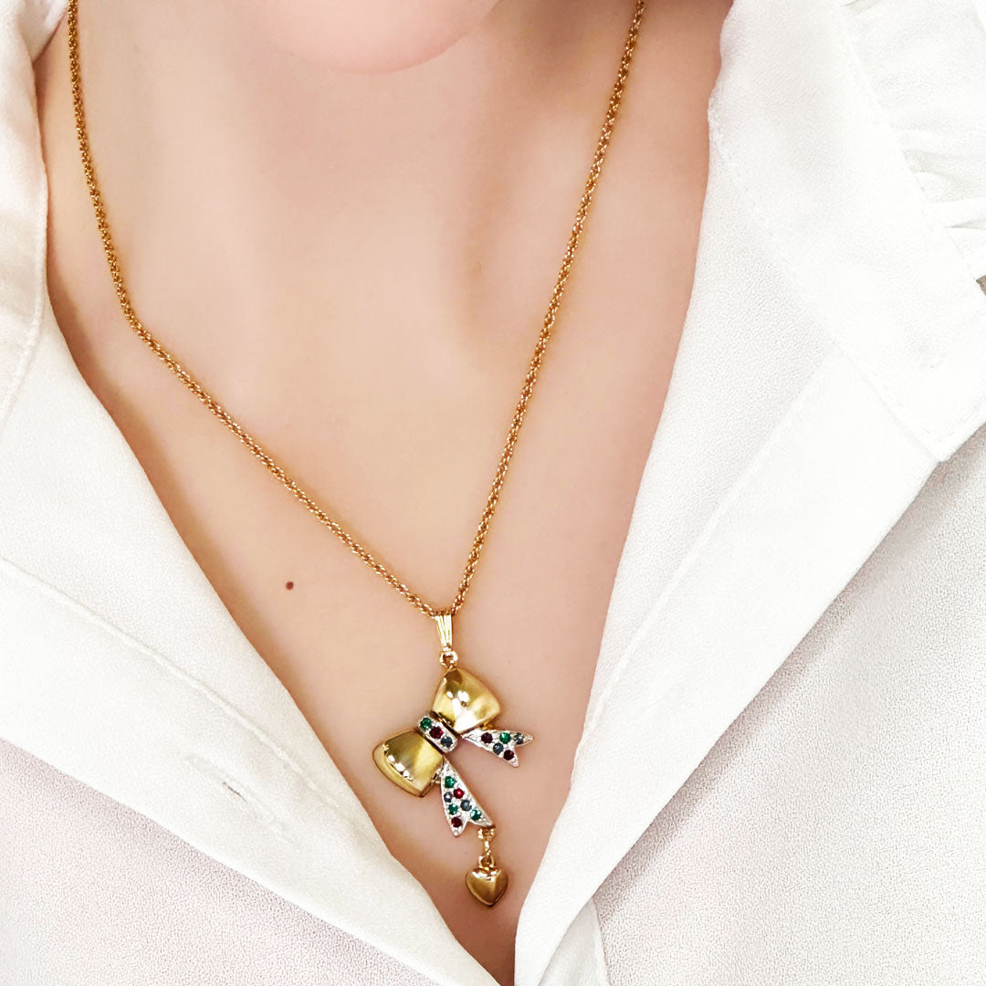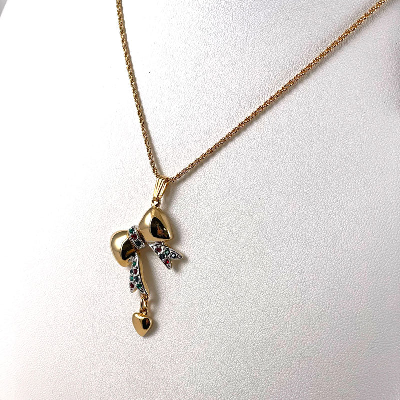 | 特徴 | ネックレス ペンダント リボン 金属アレルギー対応(ニッケルフリー) 22KT GOLD PLATED(22金メッキ) |
