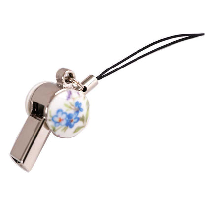 特徴  両側にリモージュを貼付したホイッスルのストラップです。防犯アラームにしてもおしゃれです。