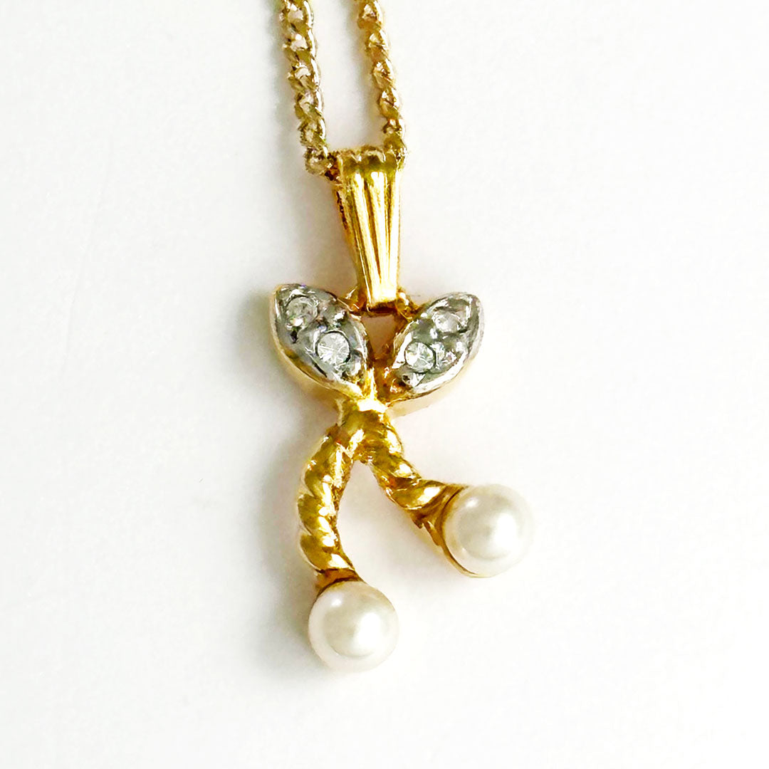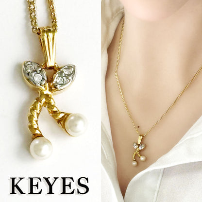 リボンのチャーム ネックレス レディース ヴィンテージアクセサリー 22KTゴールドプレート 金 ニッケルフリー KEYES カナダ製 欧米 プレゼント ギフト