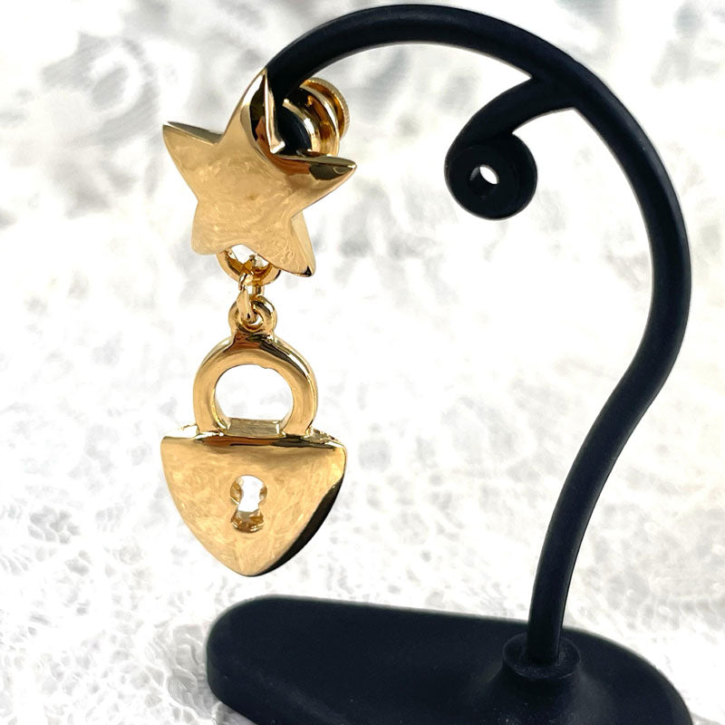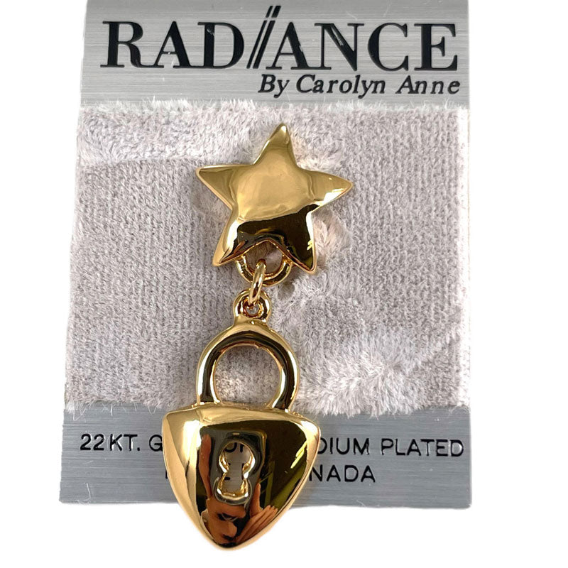南京錠のモチーフ ピンブローチ ヴィンテージアクセサリー 22KTゴールドプレート 金 ニッケルフリー KEYES カナダ製 欧米 プレゼント ギフト