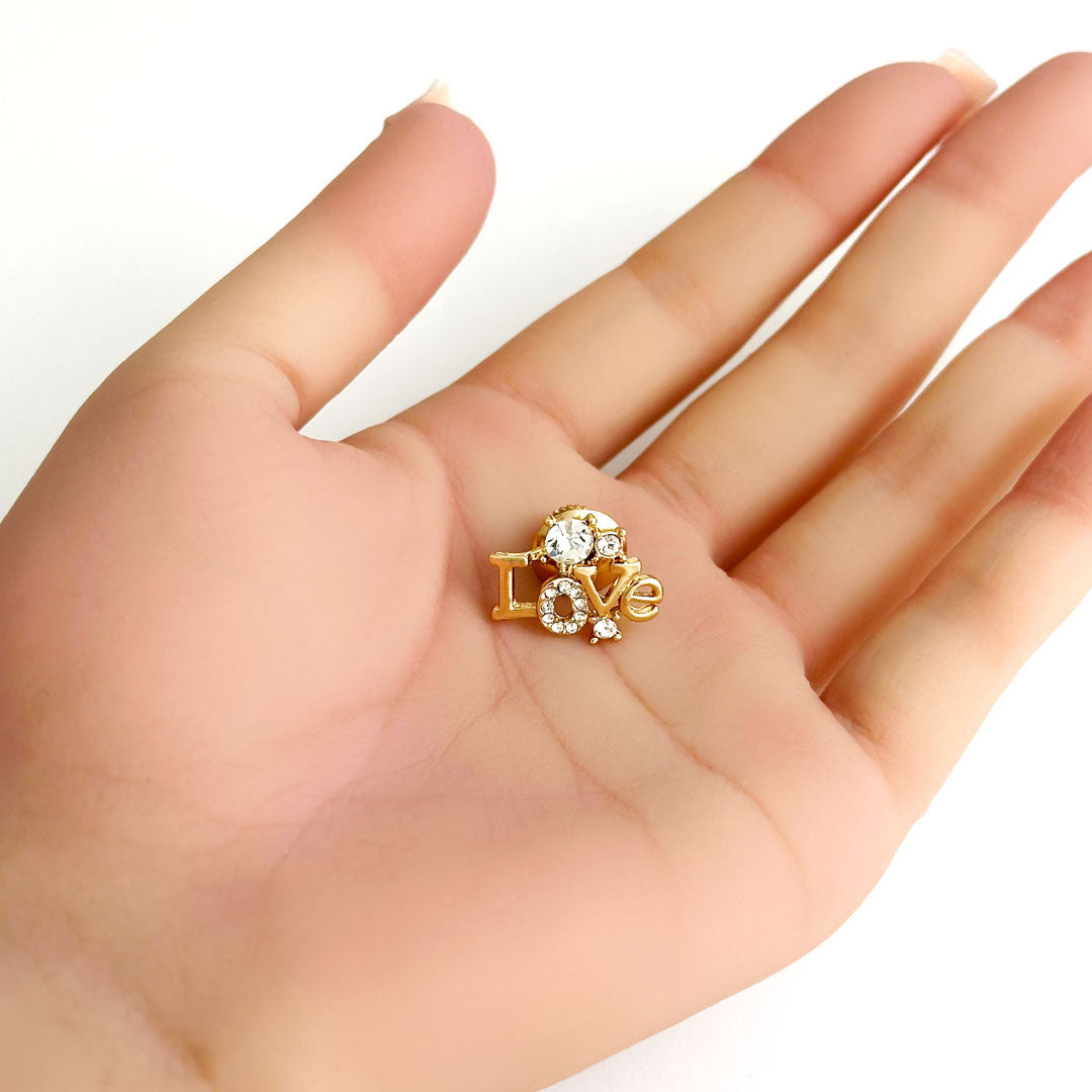 | 規格 | ・素材 真鍮 ゴールドメッキ ラインストーン ・カラー ゴールド(金) ・モチーフ LOVE 英字 英語 アルファベット メッセージ ・ジャンル 小物 雑貨 アクセサリー タックピン ラベルピン ネクタイピン ブローチ |