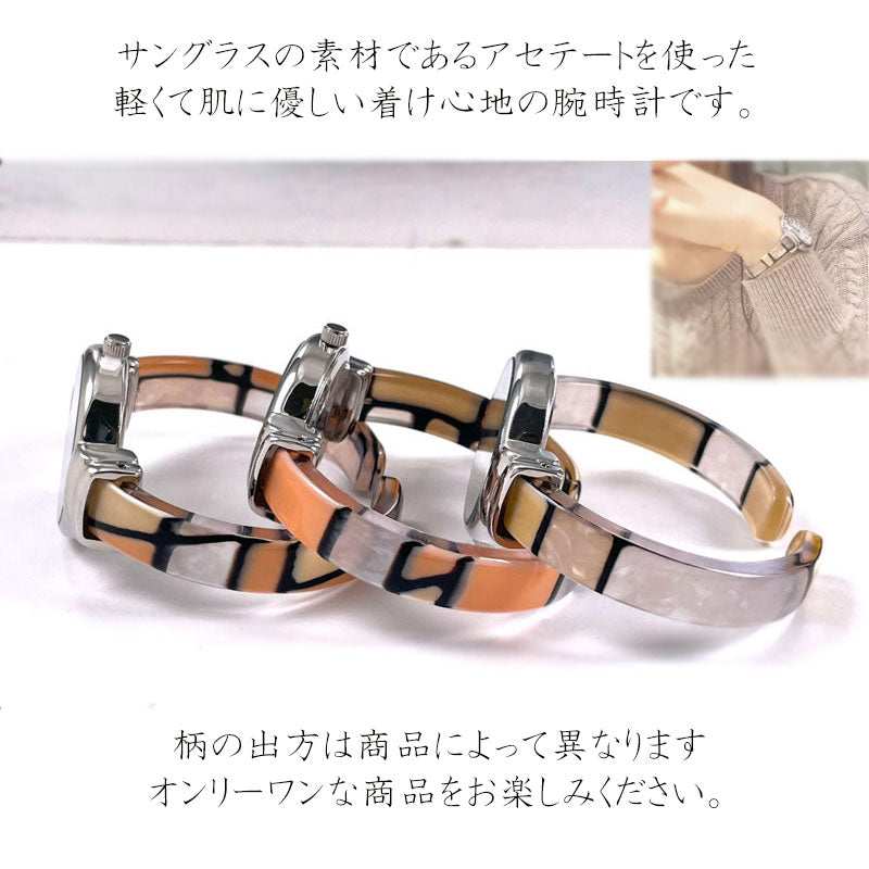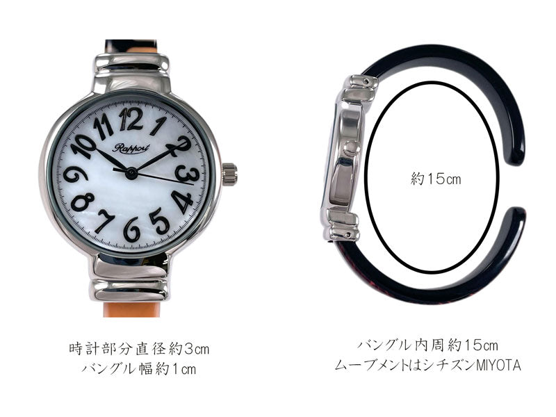 【Rapport】 バングルウォッチ アセテートバングル ラウンド 見やすい文字盤 華奢 細め レディース 腕時計