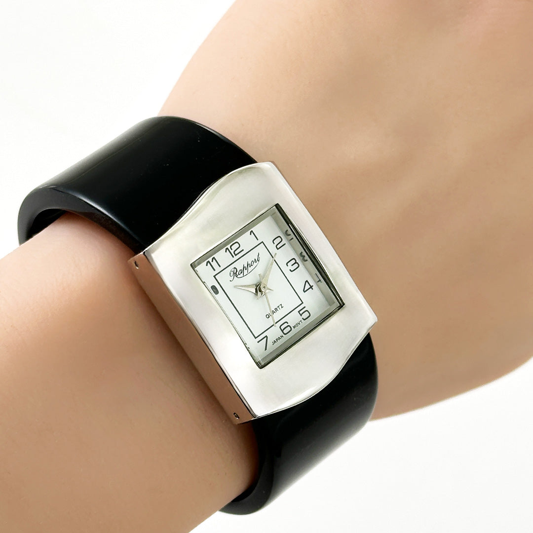 着脱簡単らくらくワンタッチなファッションウォッチ・バングルウォッチはお手軽で可愛いお洒落を楽しめます。 簡単装着できるので、朝学校や会社に行くときの忙しい時間でも腕にはめるだけで手抜きオシャレが完成。ブレスレット感覚のアクセサリーとして街中にお出かけデート、お散歩の普段使いとしても最適なレディースウォッチです。さらに他のアクセサリーとレイヤリングすることでもっとおしゃれになれます。個性的で華やかなデザインが多いのでインスタ映えもばっちりです!ごつめの重量感のあるデザインの物では男性でも楽しめる仕様かと思われます。時計は全て保証書付きでおりますので、初期不良・交換・返品等お気軽にお問い合わせください。ラポールウォッチは安心の日本製ムーブメントで実用的な女性用のかわいいカジュアルウォッチです。