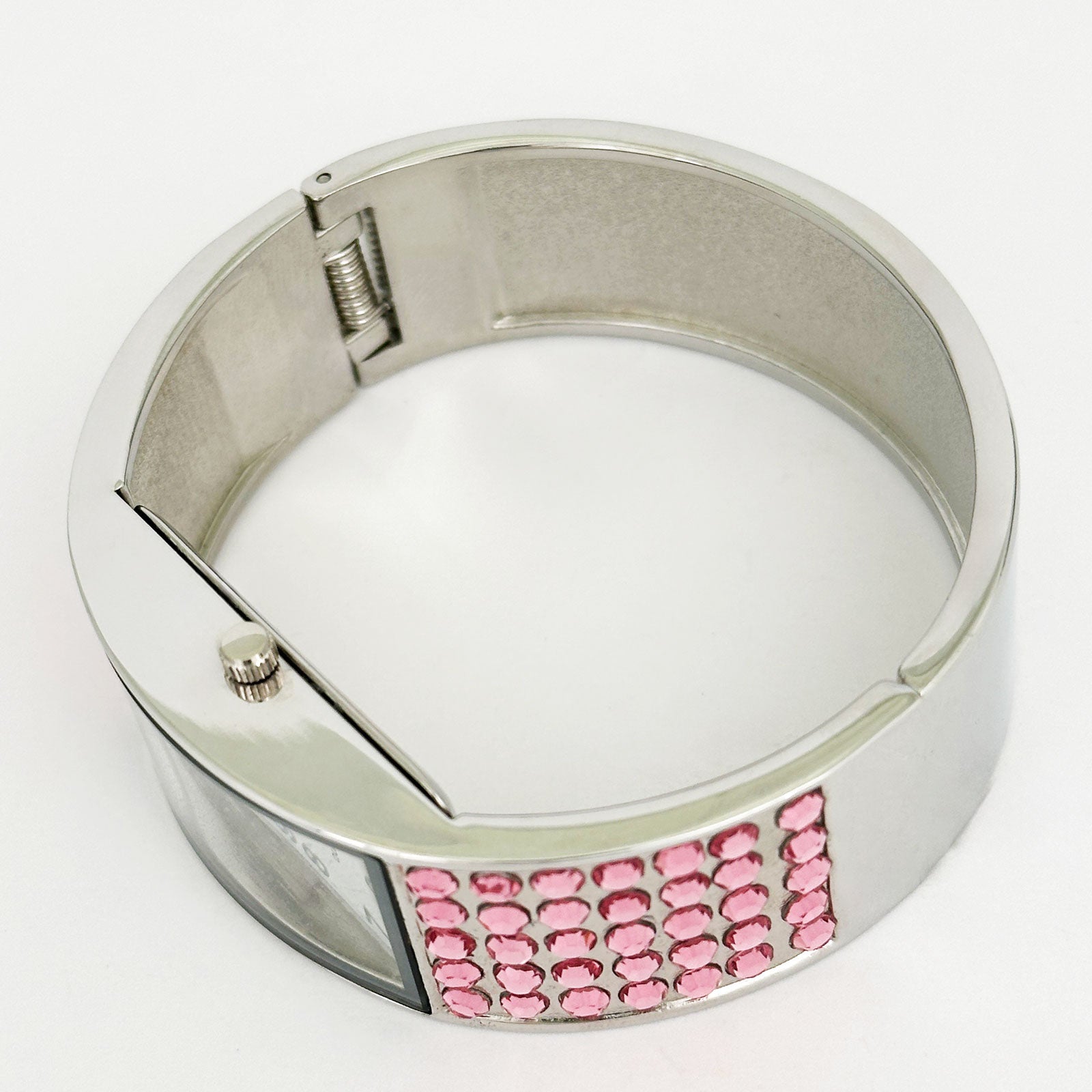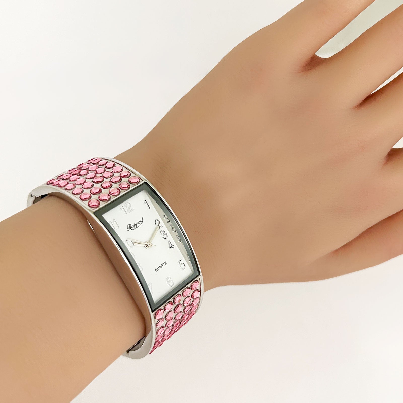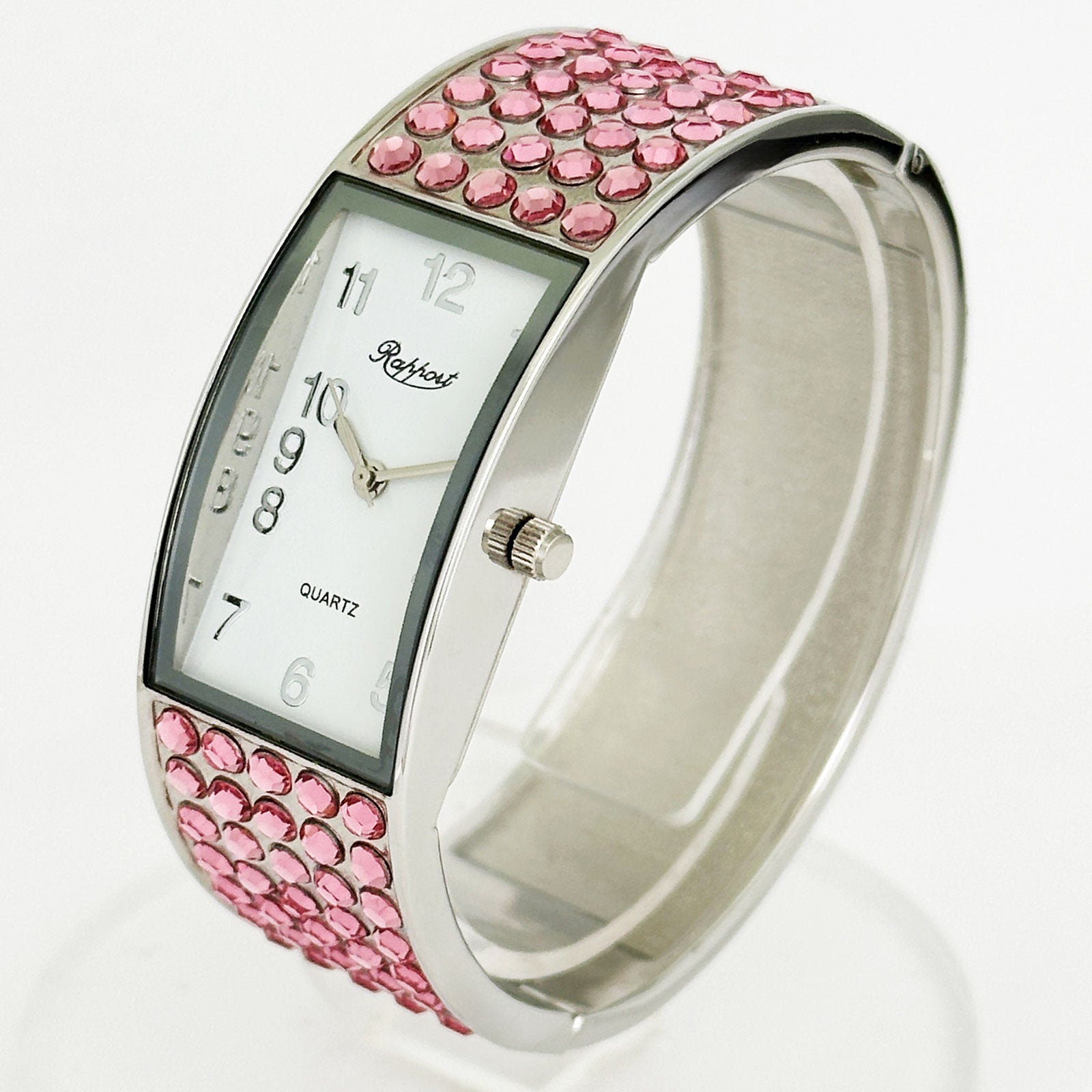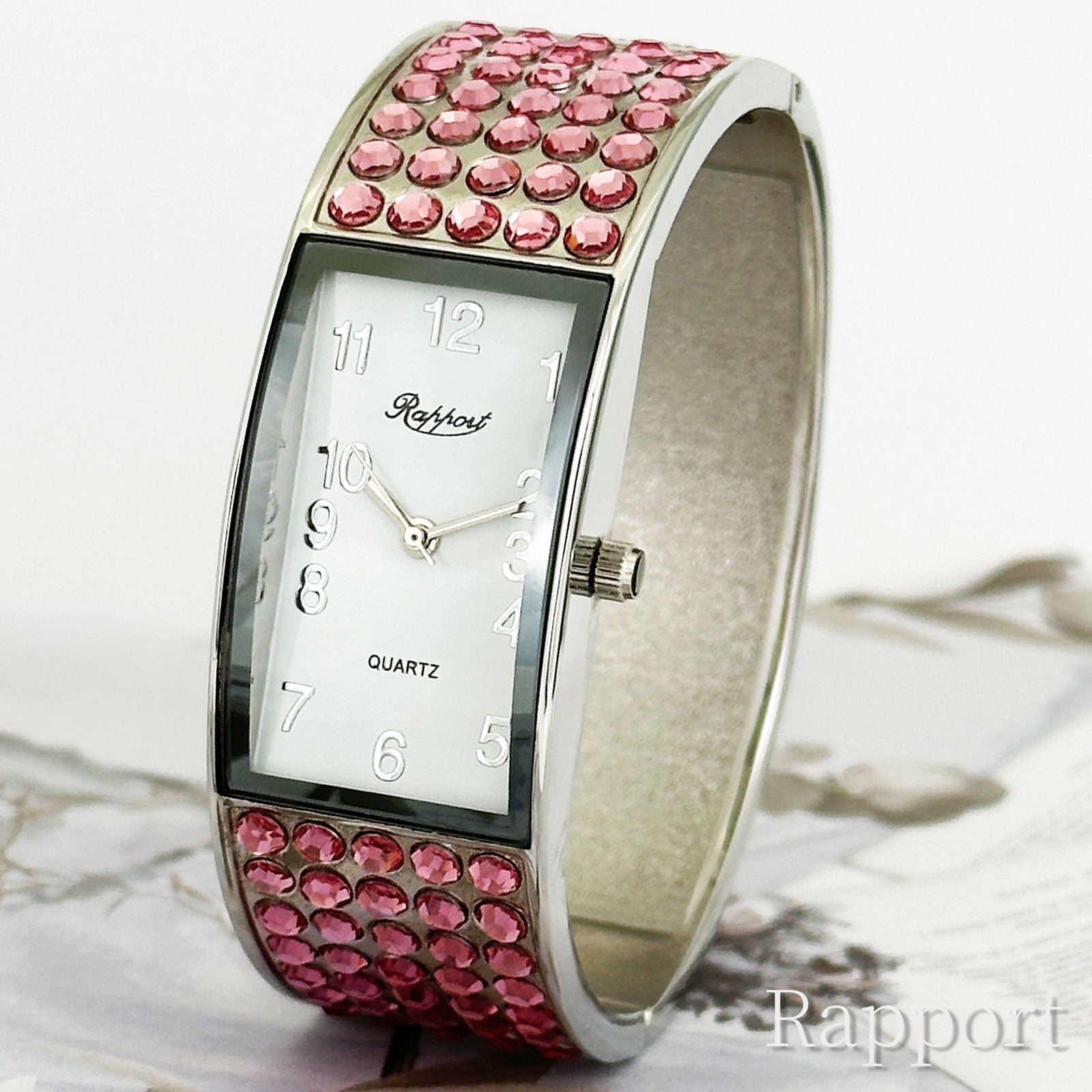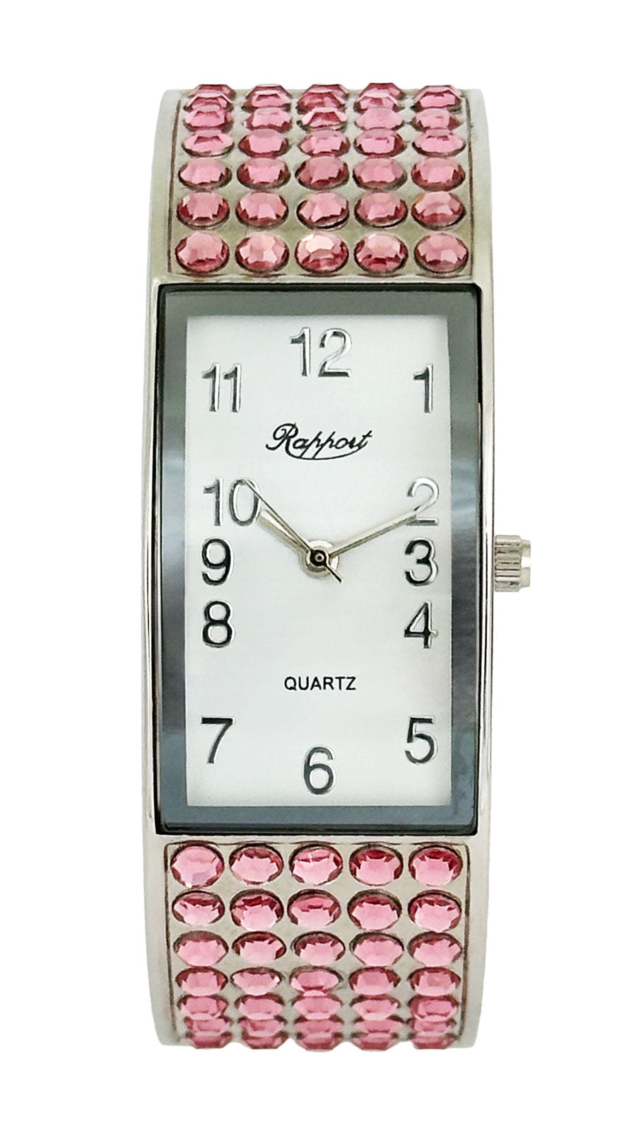 【Rapport】 バングルウォッチ ピンクストーン 華やか 幅広 レディース 腕時計