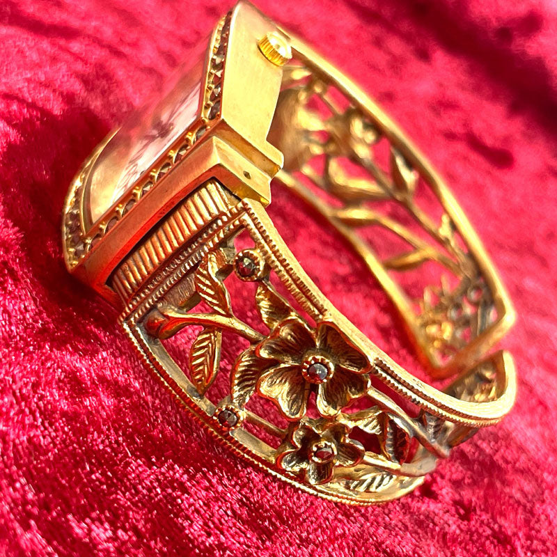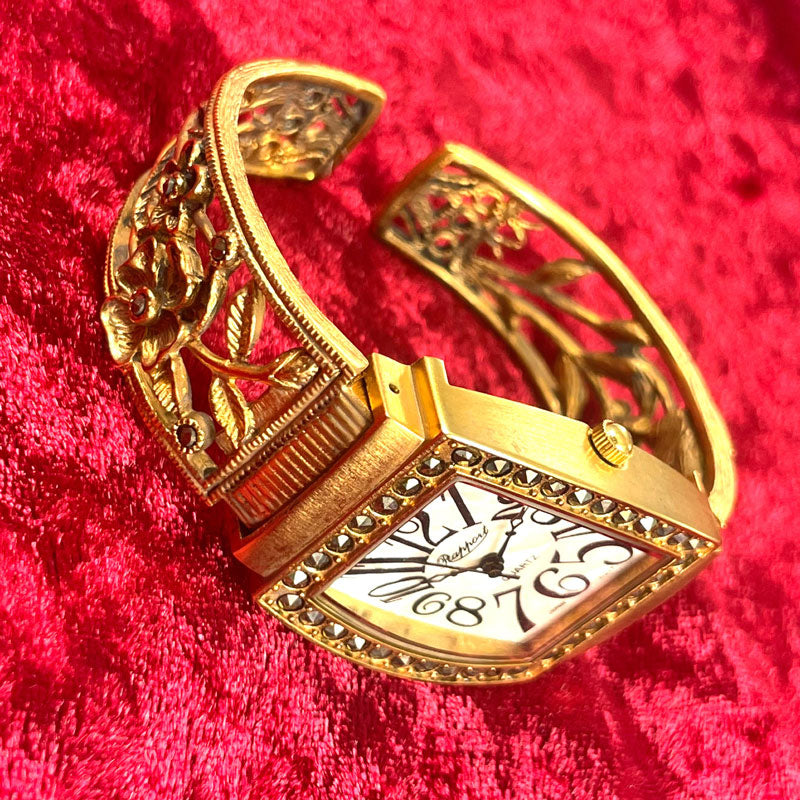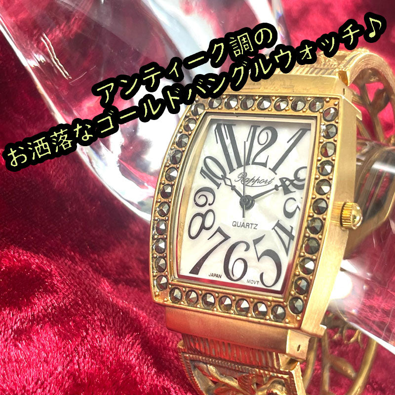 | サイズ | ・サイズ 時計部分縦約35mm横約28mm 内周約165mm(フリーサイズ) バングル幅1.6cm |